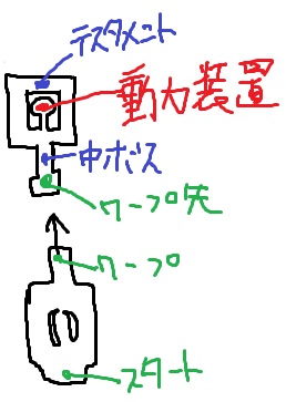 マップは何というんだろ、、、モルグスの入口が最初の部屋で、ボス部屋が広くて真中に穴があいてる感じかな?